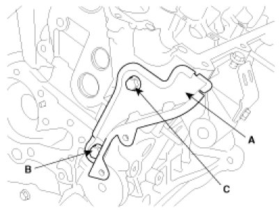 (6) Connect the No.1/No.2 OCV(Oil Control Valve) connectors(A, B) and the OTS(Oil Temperature Sensor) connector(C).