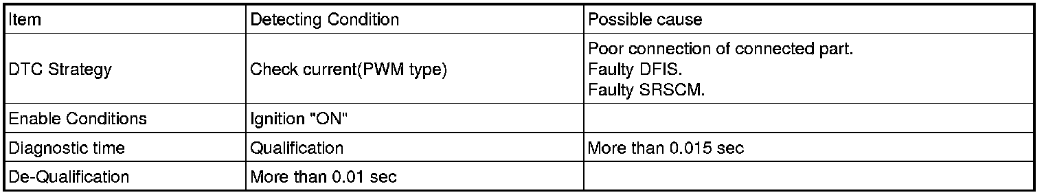 Front Impact Sensor (FIS)located at both sides of the front of engine room detects head-on collision. When FIS delivers collision signal to SRSCM, SRSCM checks if safing sensor located in SRSCM detects collusion and if both FIS and safing sensor detects collision simultaneously, SRSCM operates front air bag.