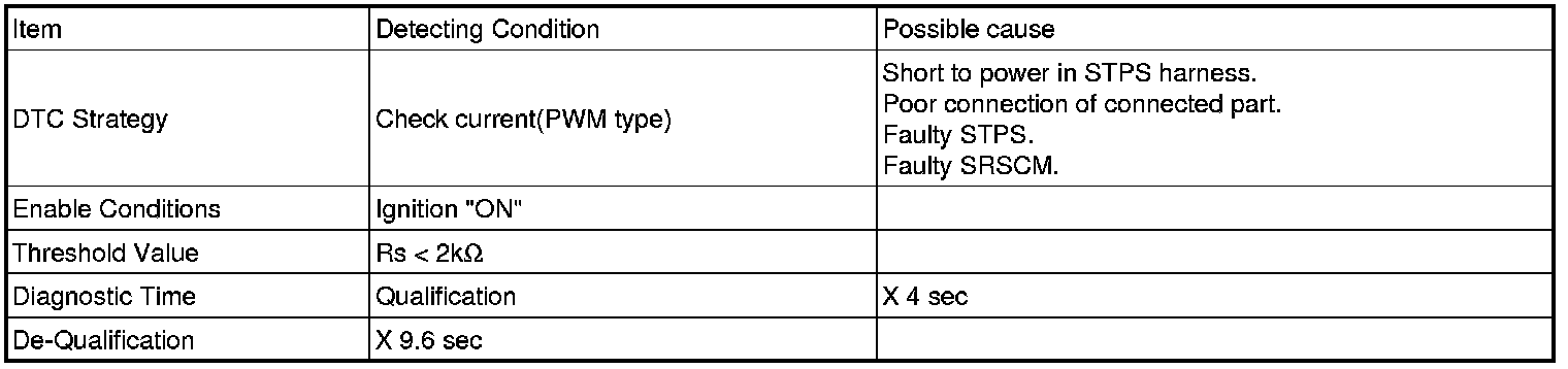The SRSCM sets DTC B1391 if there is a short to power in Passenger STPS harness.