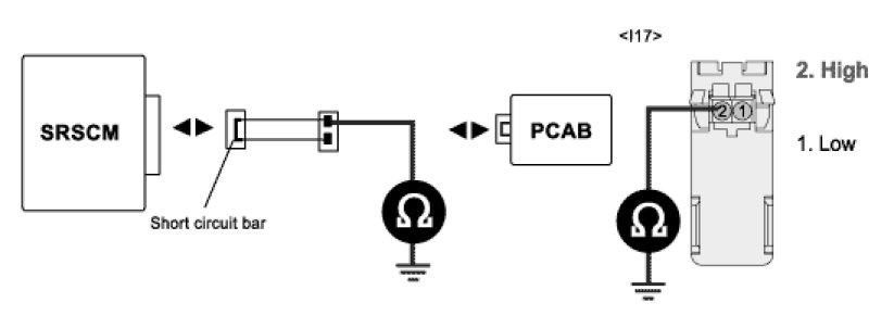 B1479 Inflatable curtain airbag front-Passenger resistance circuit short to Ground