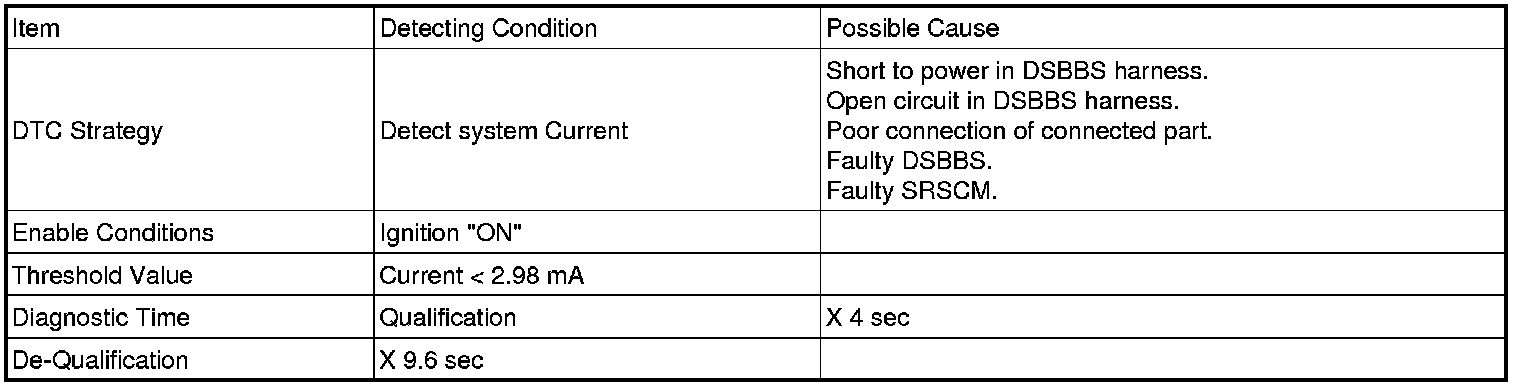 The SRSCM sets DTC B1511 if there is a open circuit or short to power in DSBBS harness.
