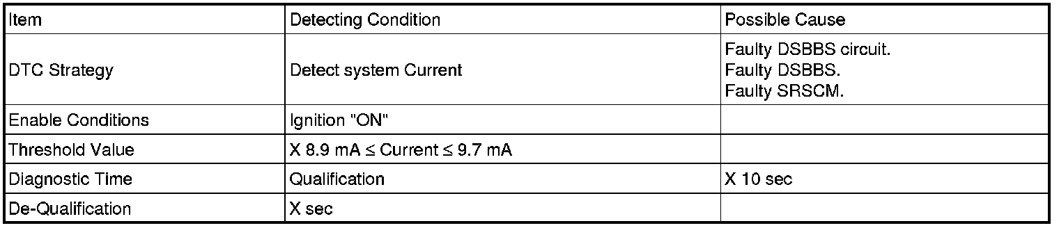 The SRSCM sets DTC B1515 if there is any fault in DSBBS circuit.