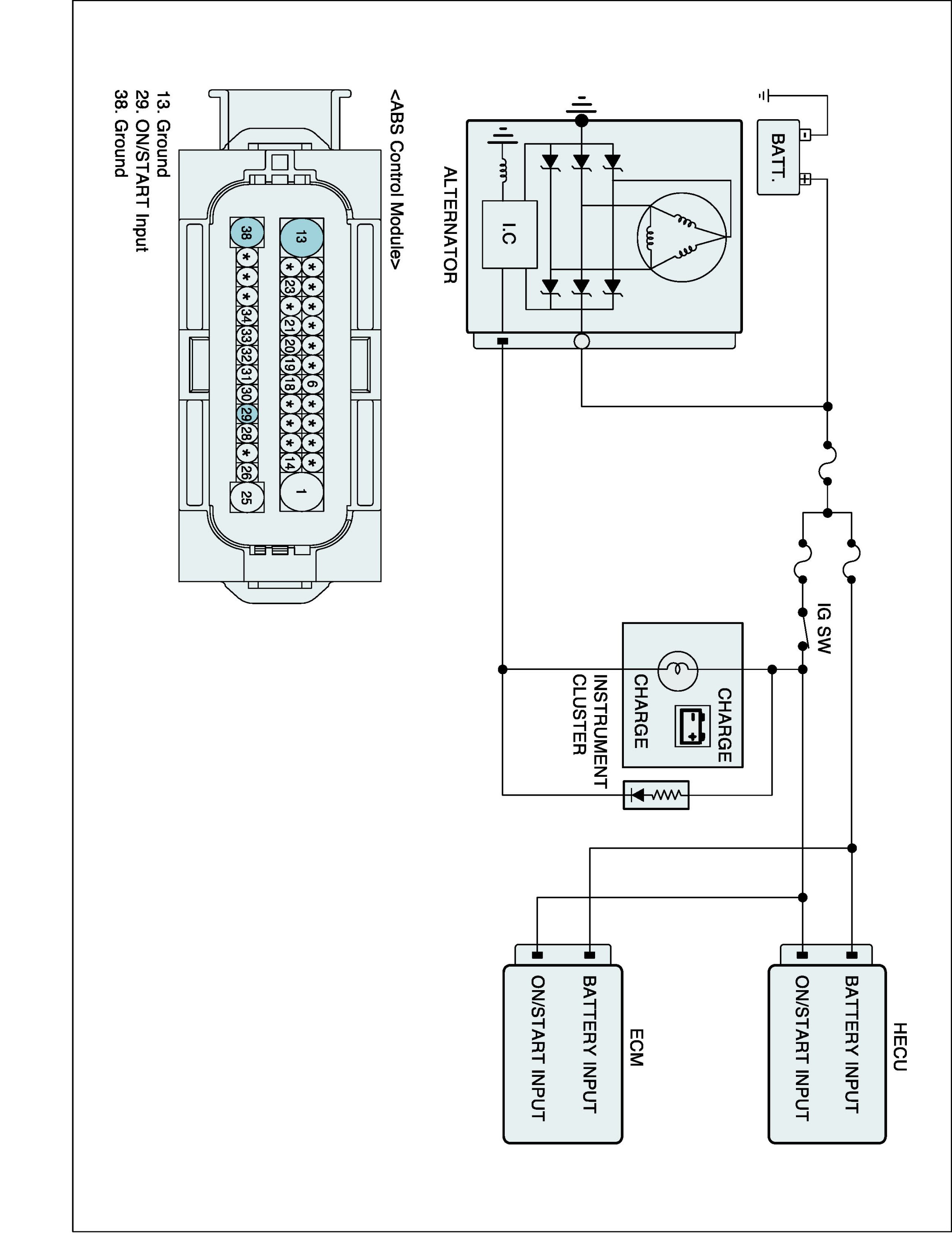 The ABS ECU monitors the battery voltage by reading the value of voltage.