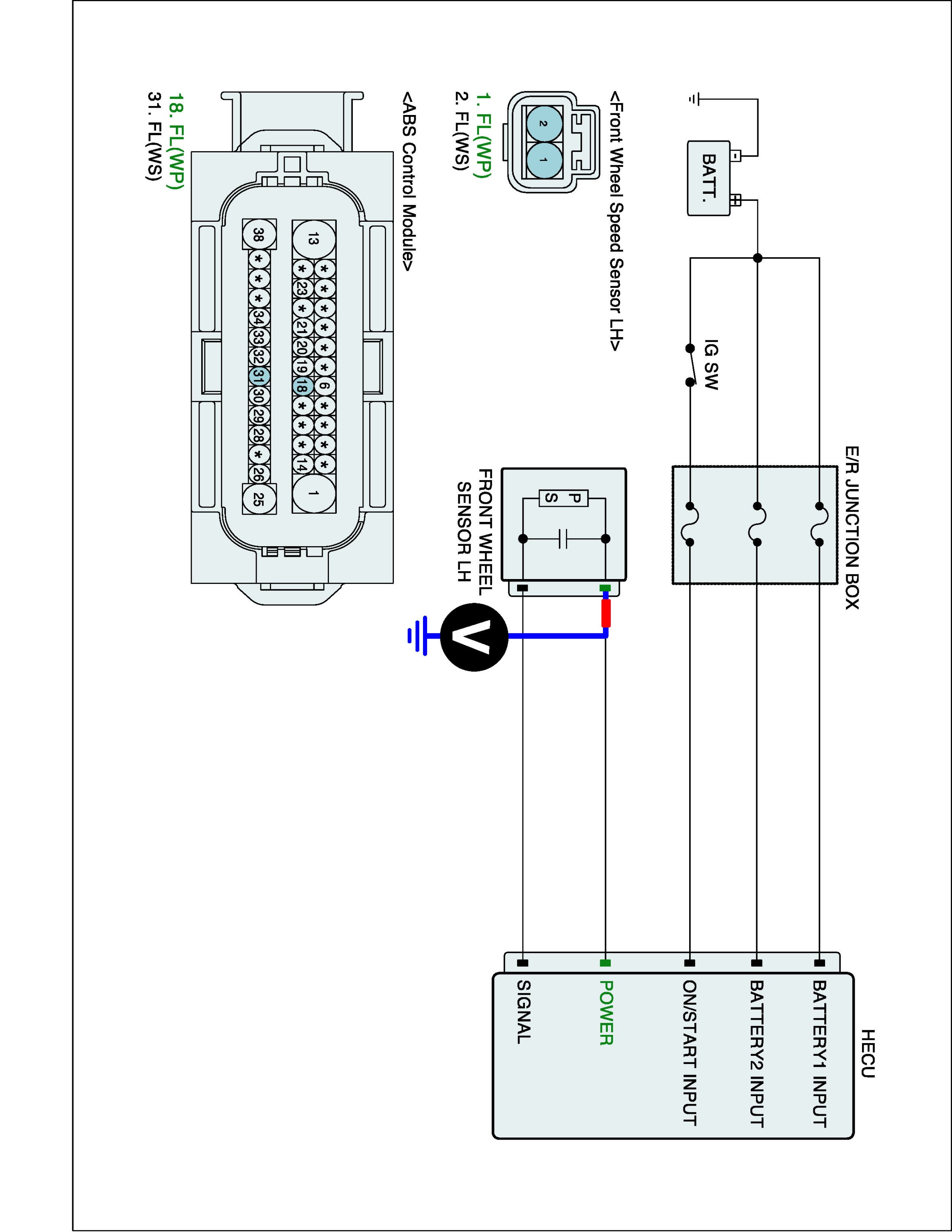 4. Measure waveform between wheel speed sensor signal terminal of the HECU harness connector and chassis ground with oscilloscope.