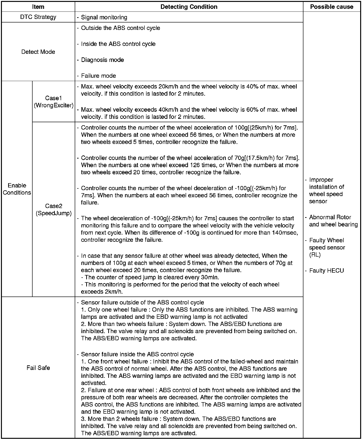 This code is set if an abnormal speed change ratio is detected while the vehicle speed is more than 2 Km/h.