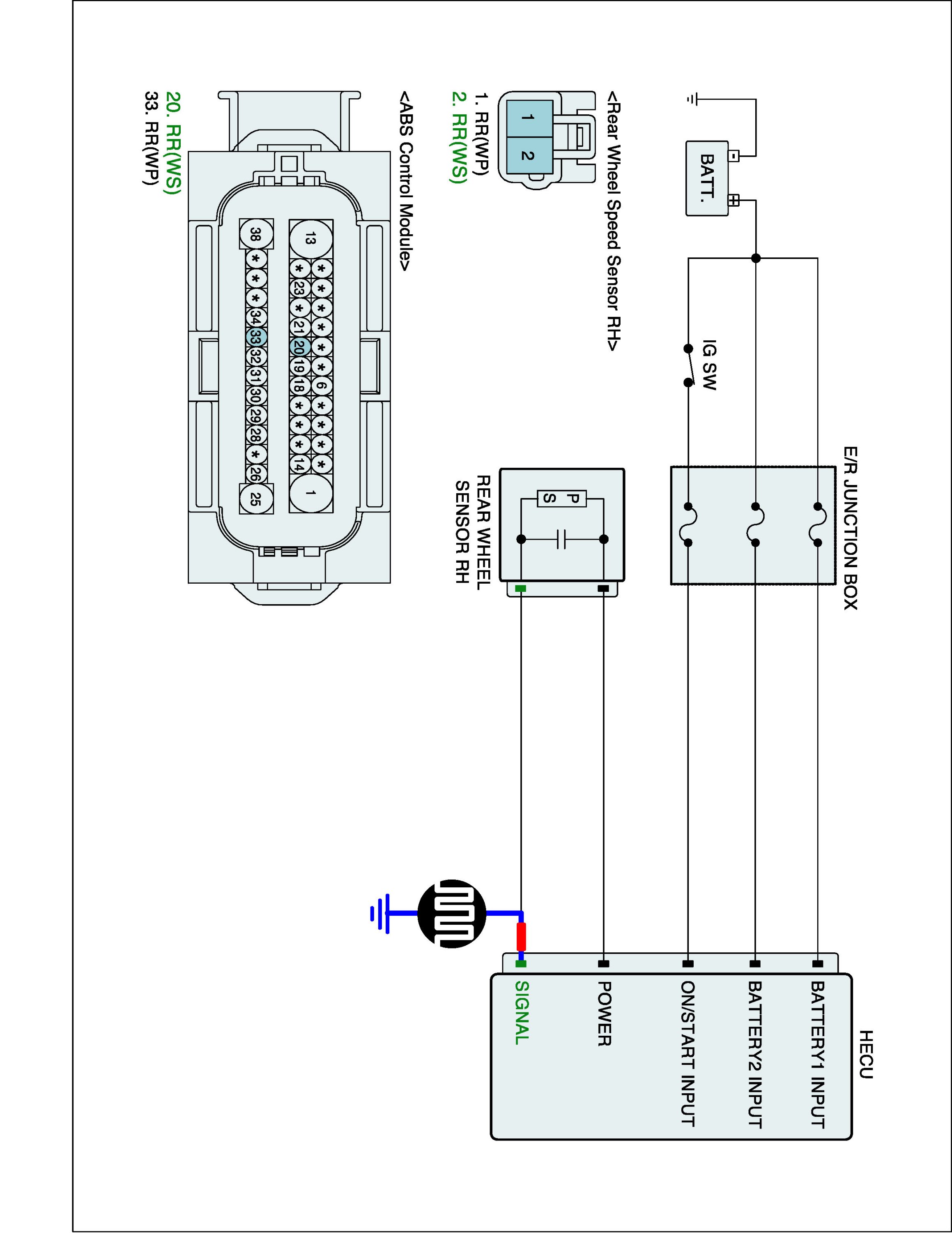 4. Measure waveform between wheel speed sensor signal terminal of the HECU harness connector and chassis ground with oscilloscope.