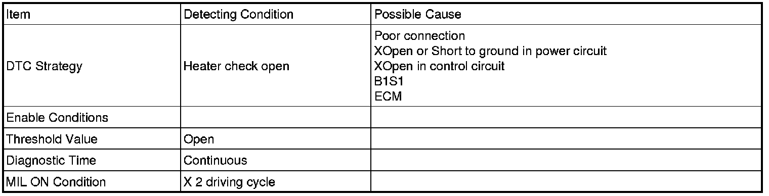 When ECM detects open in the heater control circuit (B1S1), ECM sets DTC P0030.