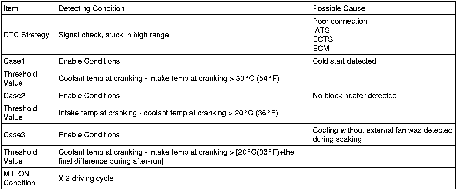 ECM monitors ECTS's output value at cranking, and the value of ECTS is out of the threshold value, ECM sets DTC P0115.