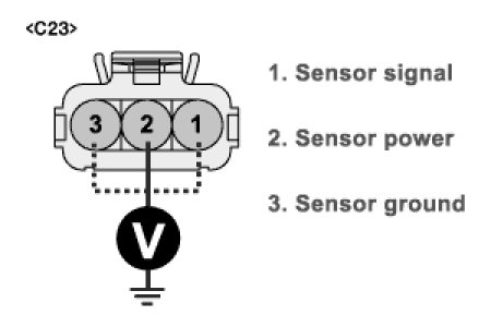 4. Measure voltage between terminal "1","2" and "3" of sensor harness connector and chassis ground