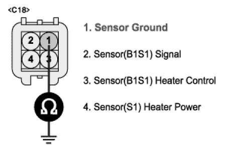 3. Measure resistance between terminal 1 of HO2S (B1/S1) and chassis ground.