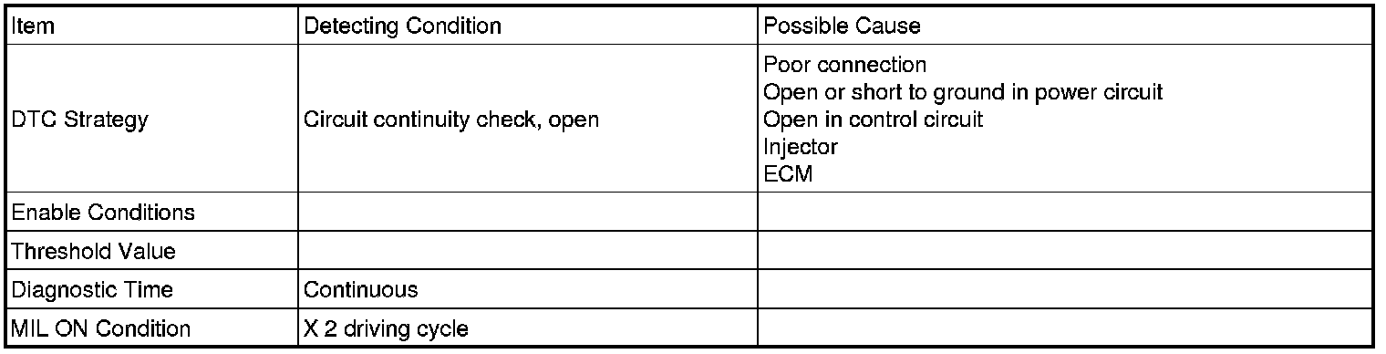 If there is Open in injector #1 circuit, PCM sets DTC P0201.