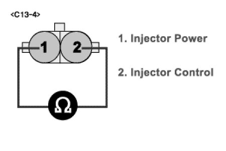 (3) Measure resistance between terminal 1 and 2 of injector connector. (Component Side)