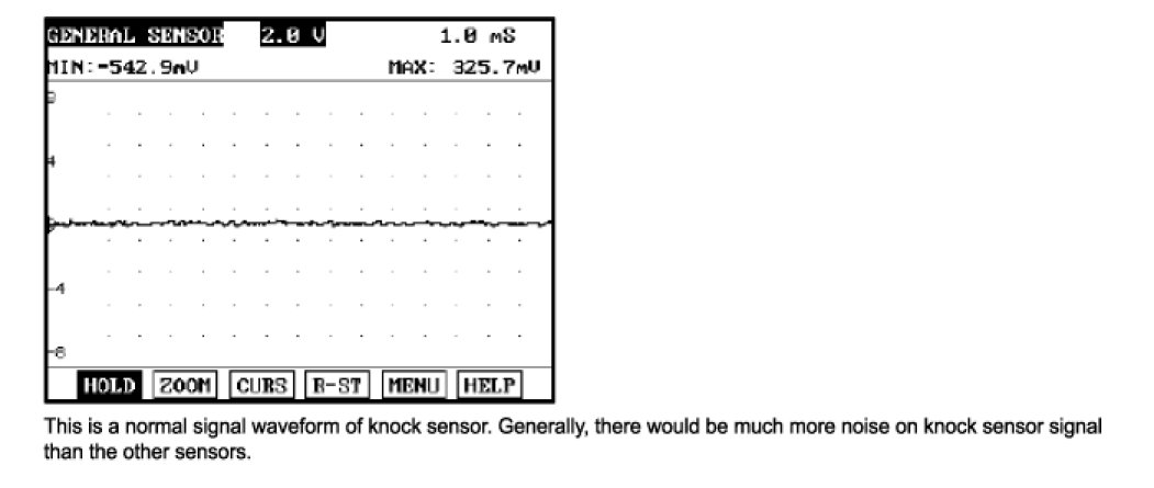 Knocking is a phenomenon characterized by undesirable vibration and noise that can cause engine damage. A knock sensor (KS) is mounted on the cylinder block and senses engine knocking. A knocking vibration from the cylinder block is applied as pressure to the piezoelectric element. A knock sensor (KS) detects vibration when RPM rises or drops and generates voltages based on this vibration. The PCM controls the ignition timing based on the amplitude and frequency of the knock sensor signal. For example, if engine knocking occurs, the ignition timing is retarded to prevent it.
