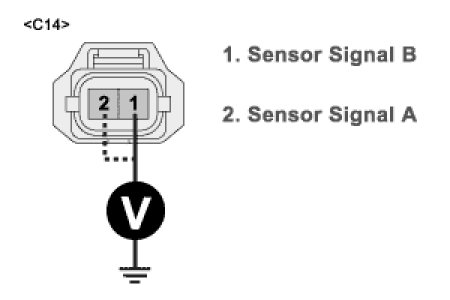(5) Measure the voltage between terminal 2 of knock sensor harness connector and chassis ground.
