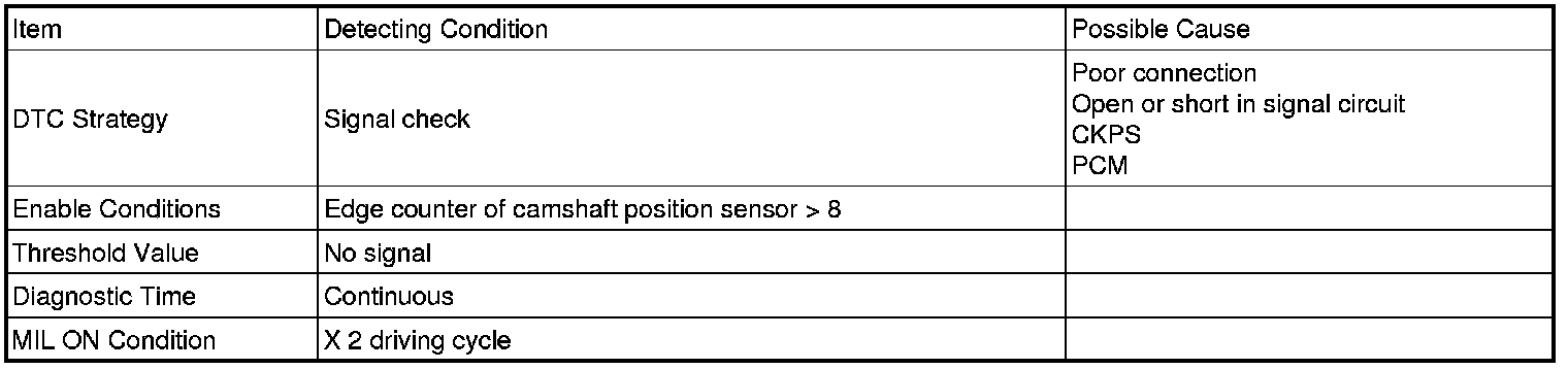 If there is no signal from CKP while there is CMP signal, PCM sets DTC P0339.