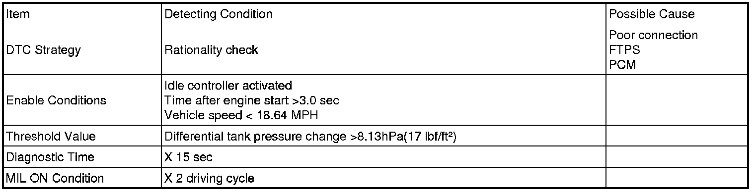 If the differential tank pressure change is over 17 lbf/ft2 during 25.5 sec under low speed condition, PCM sets DTC P0450.