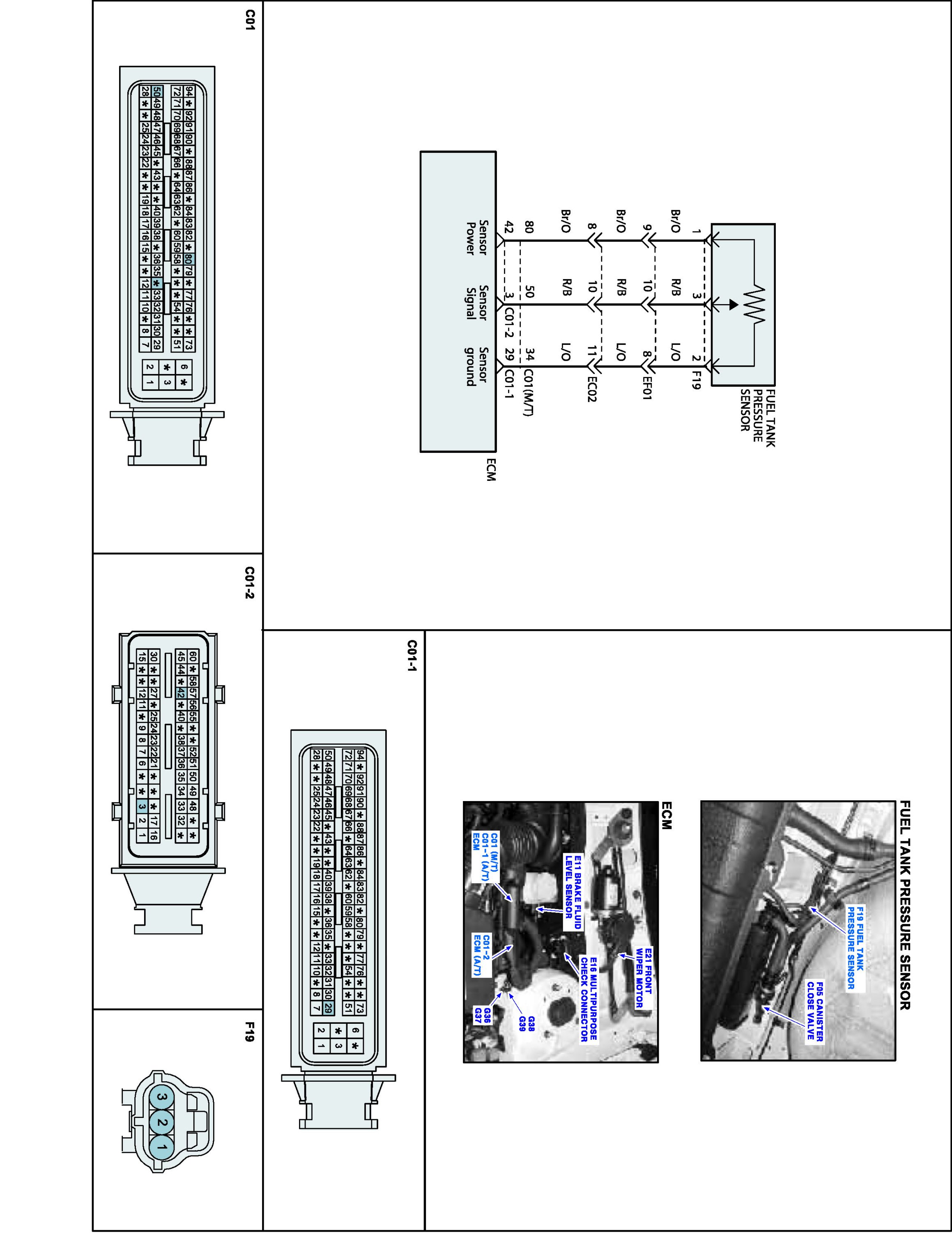 The Tank Pressure Sensor converts fuel tank pressure to a proportional analog voltage signal which is read by the engine controller for evaluation during execution of the Evaporative System Diagnostic. The Tank Pressure may be below atmospheric pressure (ie. a vacuum) or above atmospheric pressure. The fuel tank pressure is used to measure the difference between the air pressure (or vacuum) in the fuel tank and the ambient air pressure. PCM supplies a 5-volt reference and a ground to the sensor, which allows the sensor's output voltage to range from 0.1 to 4.9 volts.