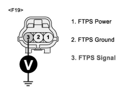 4. Measure the voltage between terminal 3 of FTPS harness connector and chassis ground.