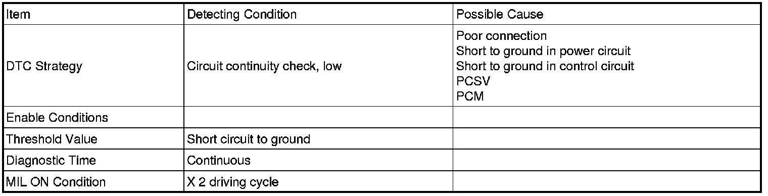 If there is Short to ground in PCSV circuit, PCM sets DTC P0458.