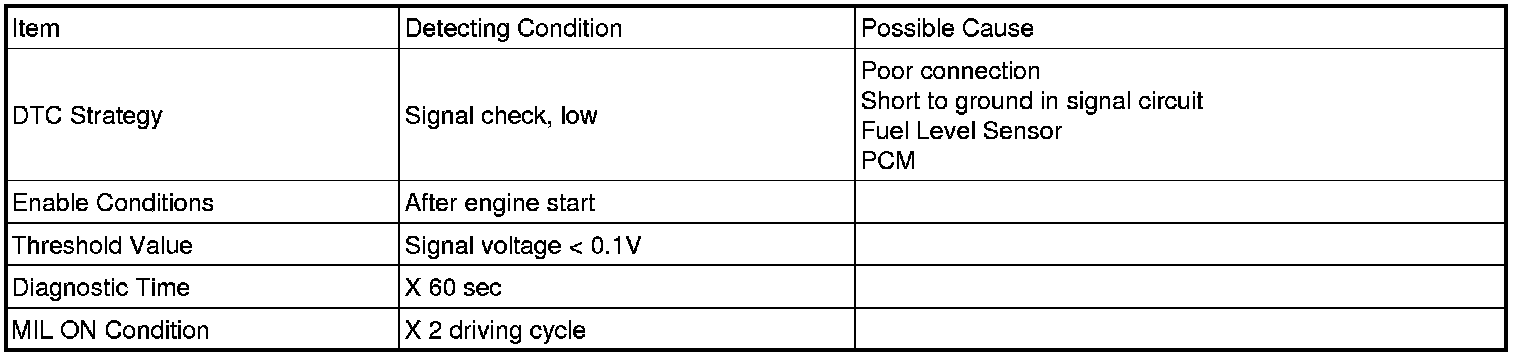 If the signal voltage is below 0.1 V during 60 sec or more, PCM sets DTC P0462.