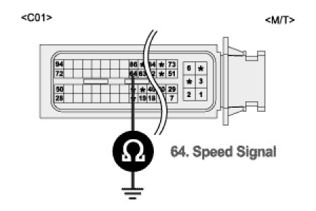 Measure resistance between terminal 64/C01 of ECM harness connector and chassis ground. [M/T]