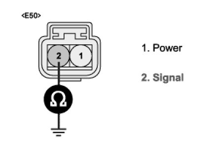 (4) Measure resistance between terminal 2/E50 of wheel speed sensor harness connector and chassis ground.
