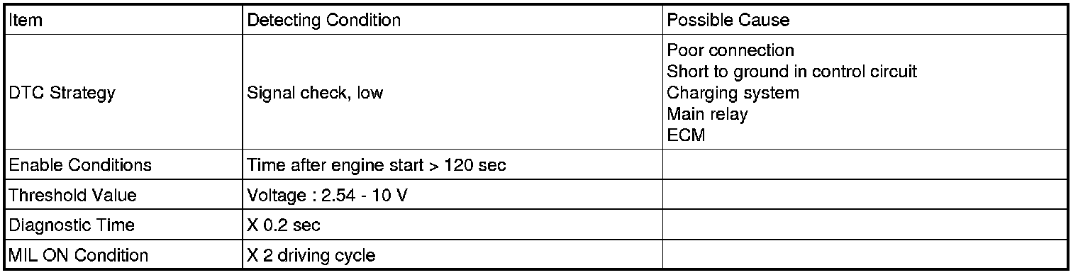 If the system voltage is 2.54 - 10 V during 0.2 sec, PCM sets DTC P0562.