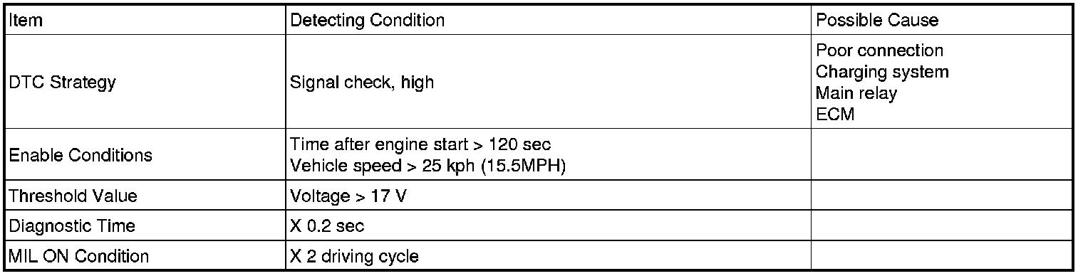 If the system voltage is over 17 V during 0.2 sec, PCM sets DTC P0563.