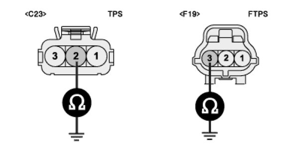 Measure the resistance between terminal 2 of TPS harness connector and ground.