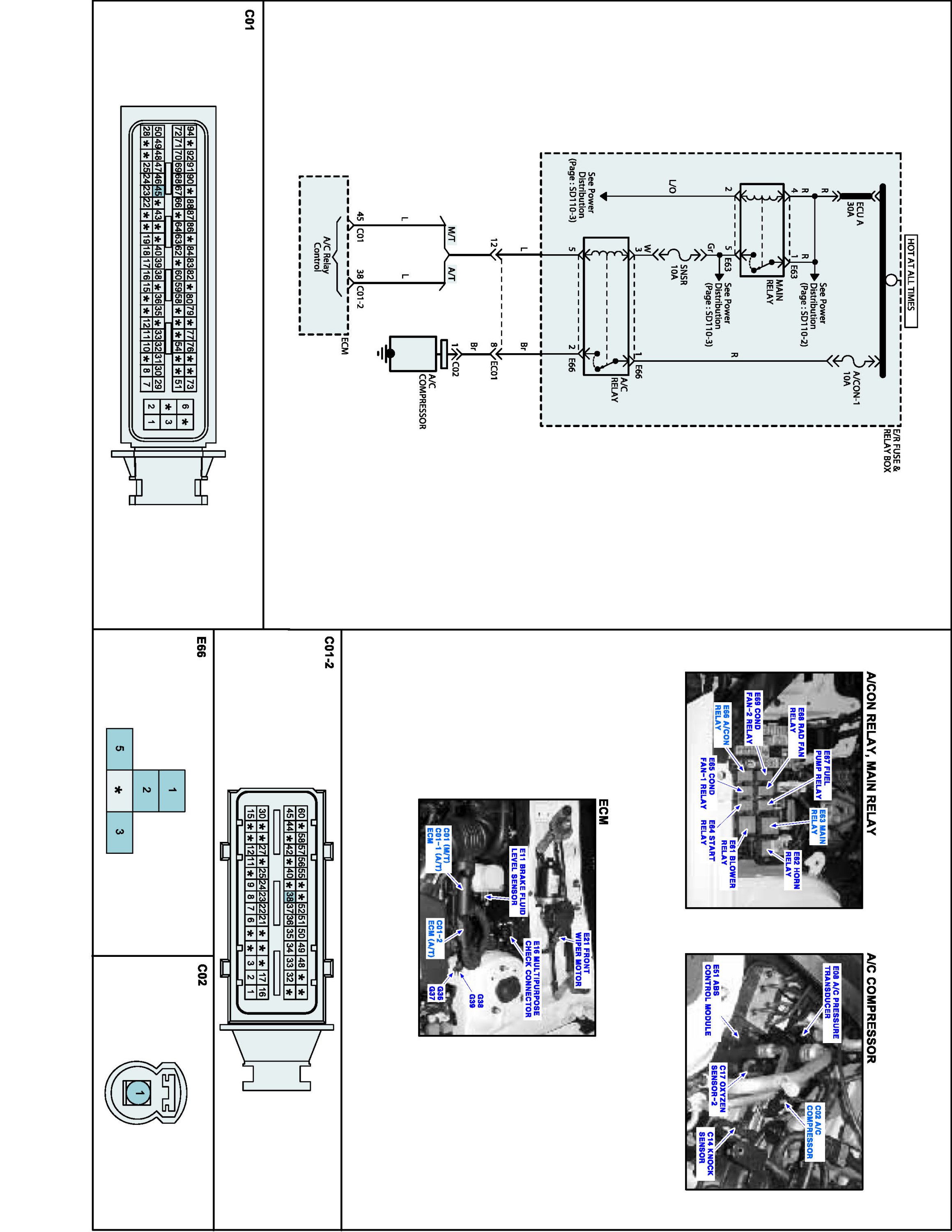 The A/C relay is activated if the A/C switch is ON while the blower is running and system operation is enabled the PCM. Power is then supplied to the A/C compressor electromagnetic clutch and A/C system is operated. The A/C compressor is switched out to prevent it running when full engine output is required or there is a risk of overheating.The PCM also inhibits compressor operation on starting to permit running conditions to stabilize.