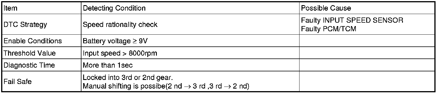 The TCM sets this code if an expected high rpm detected, The Fail-Safe function will be set by the TCM if this code is detected.