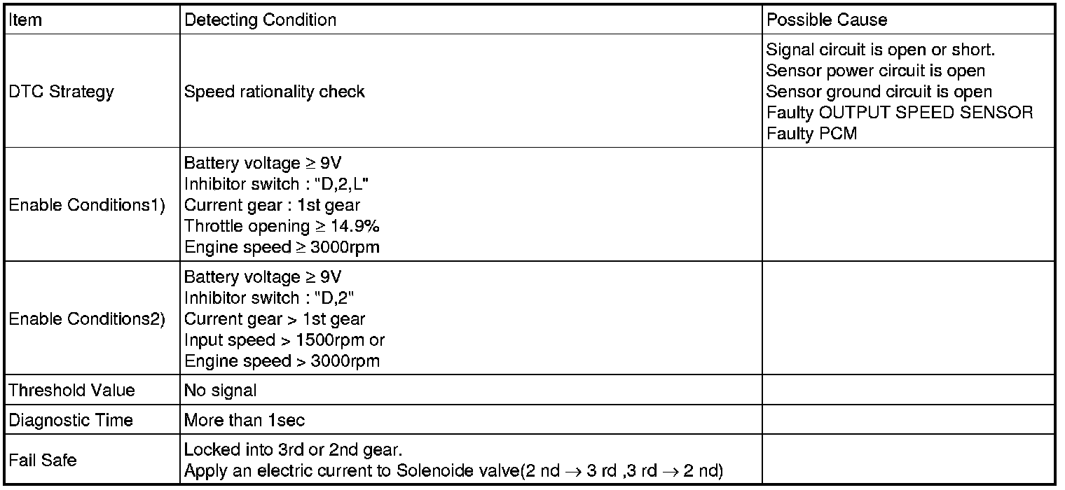 The PCM/TCM sets this code if the calculated value of the signals is noticeably different from the value calculated, using the Vehicle Speed Sensor output, when the vehicle is running faster than 30 km/h (18.6 mph). The PCM/TCM will initiate the fail safe function if this code is detected.