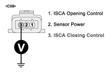 4. Measure the voltage between terminal 3 of ISCA harness connector and chassis ground.