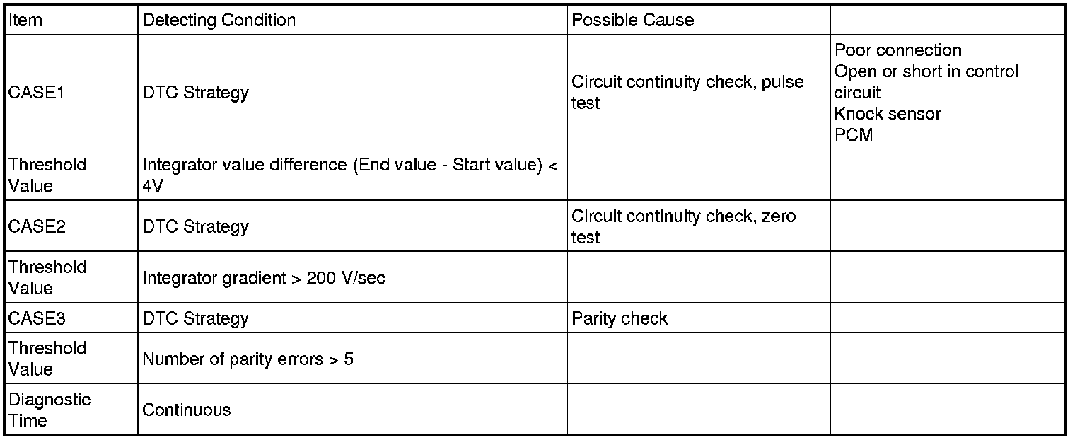 Knocking is a phenomenon characterized by undesirable vibration and noise that can cause engine damage. A knock sensor (KS) is mounted on the cylinder block and senses engine knocking. A knocking vibration from the cylinder block is applied as pressure to the piezoelectric element. A knock sensor (KS) detects vibration when RPM rises or drops and generates voltages based on this vibration. The PCM controls the ignition timing based on the amplitude and frequency of the knock sensor signal. For example, if engine knocking occurs, the ignition timing is retarded to prevent it.