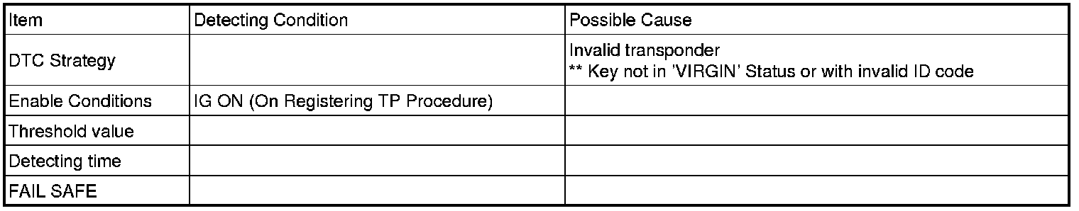 The ECM sets DTC P1674 if transponder key that can't be register (TP not in the password mode or whose transport data has been changed) is inserted for registration procedure.