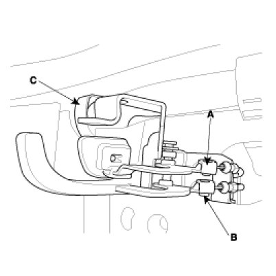 3. Disconnect the release handle cable (A) and fuel fill door release handle cable (B) then remove the release handle(C).