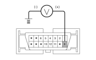 Measure the voltage between terminal 9 of the data link connector and body ground.