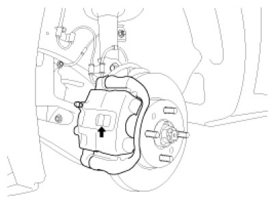1. Check the brake pad thickness through the caliper body inspection hole.