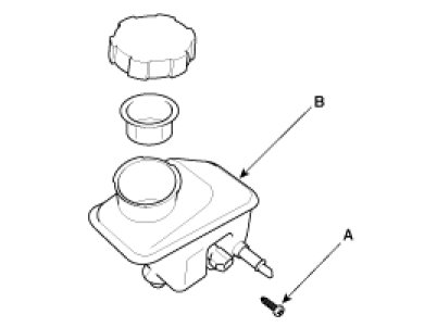 3. Remove the reservoir(B) from the master cylinder after remove the mounting screw (A).