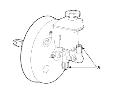 4. Remove the proportioning valves(A).( Conventional brake system)