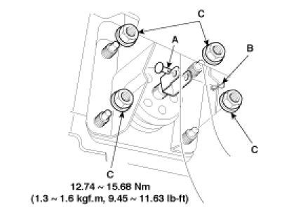 4. Remove the four booster mounting nuts (C).