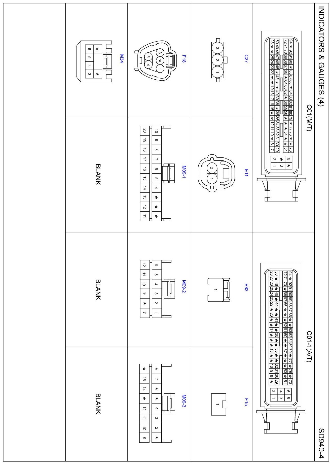 Indicators & Gauges (4) Connector Pin Outs: