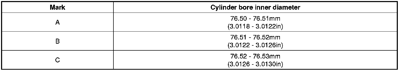 Oil ring : 0.20 - 0.70mm(0.0079 - 0.0276in)