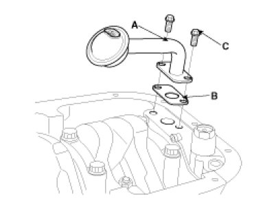 Install a new gasket(B) and oil screen(A) with 2 bolts(C).
