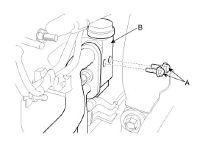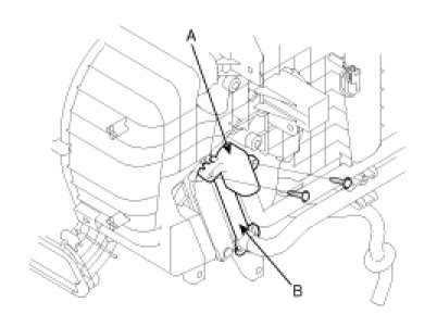4. Remove the bolts (A) and the expansion valve (B) from the evaporator core.