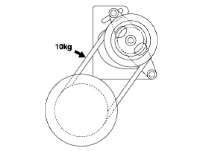 1. Press the V belt, applying a pressure of 98N (10kg, 22lb) at the specified point and measure the deflection to confirm that it is within the standard value.