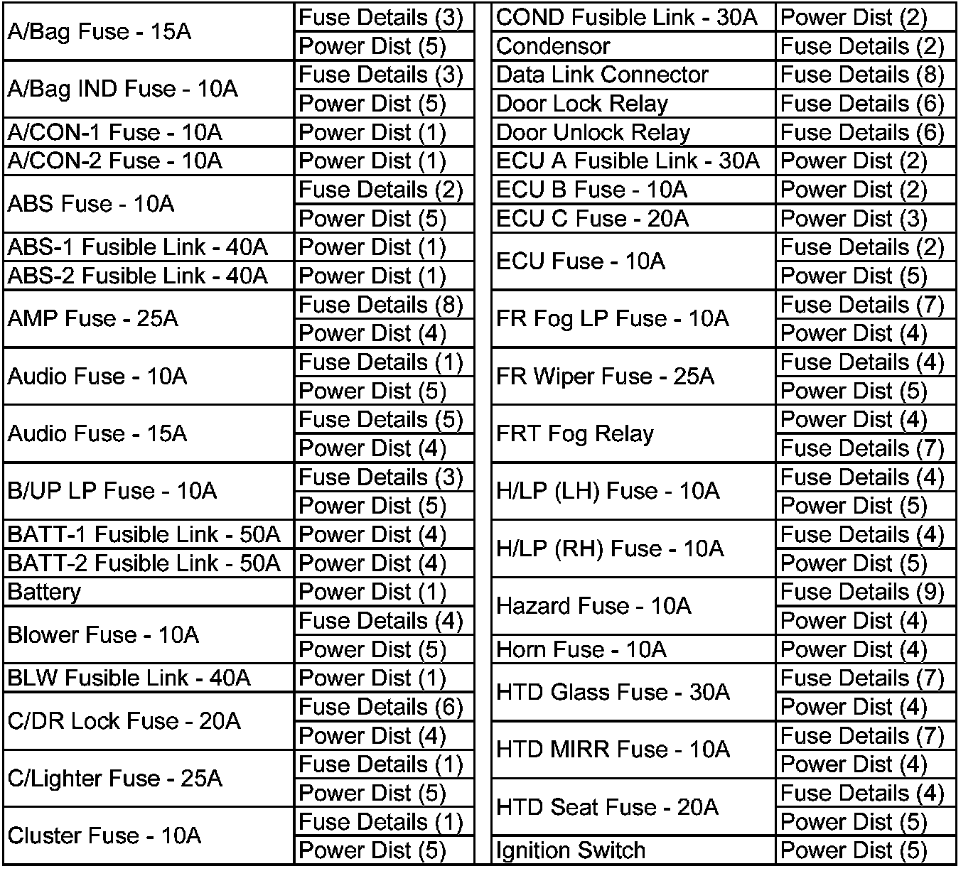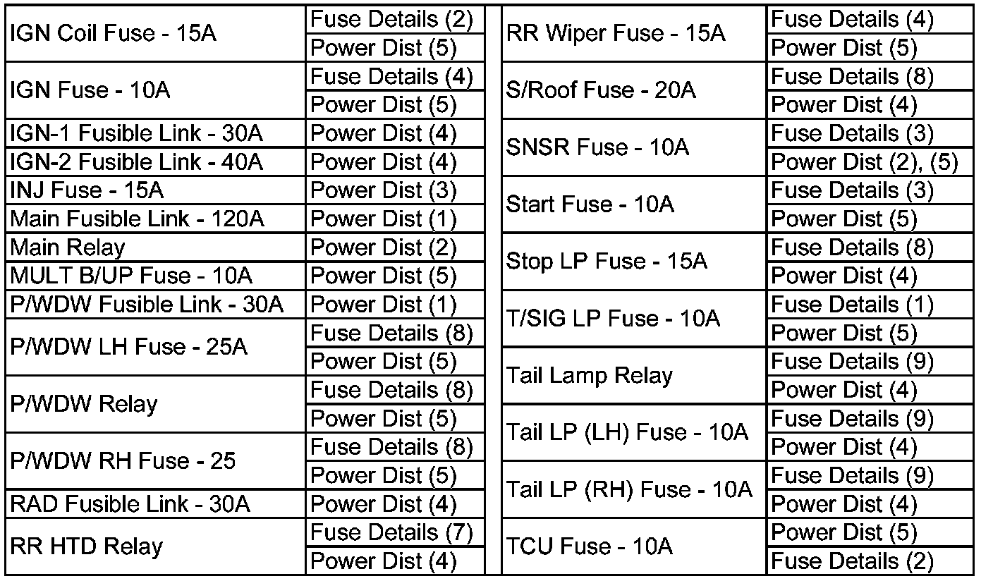 Power Distribution & Passenger Compartment Fuse Details