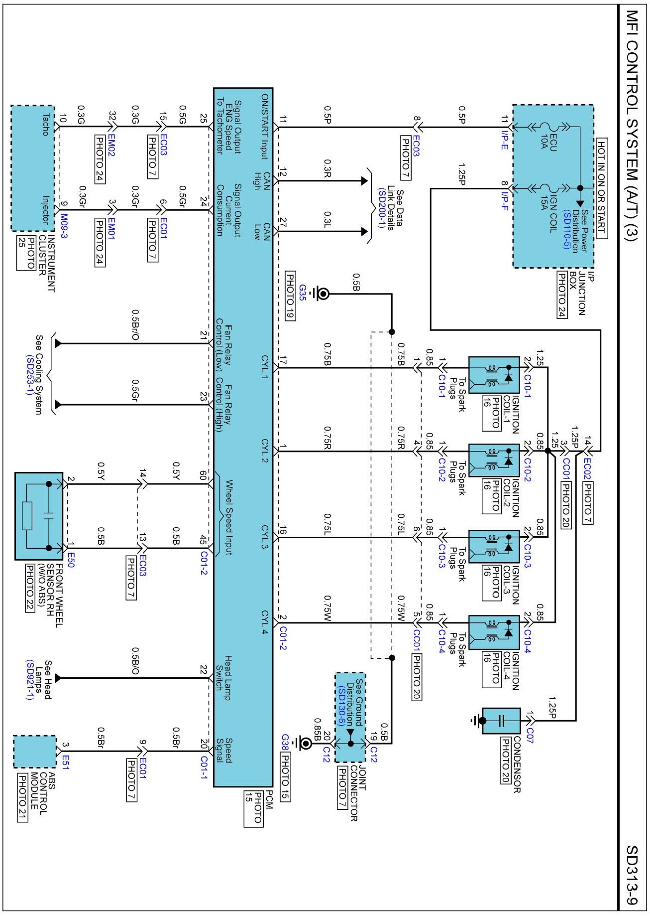 MFI Control System (A/T) (6) Connector Pin Outs:
