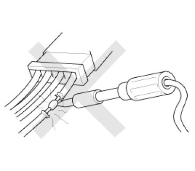- When using electrical test equipment, insert the probe of the tester into the wire side of the connector.