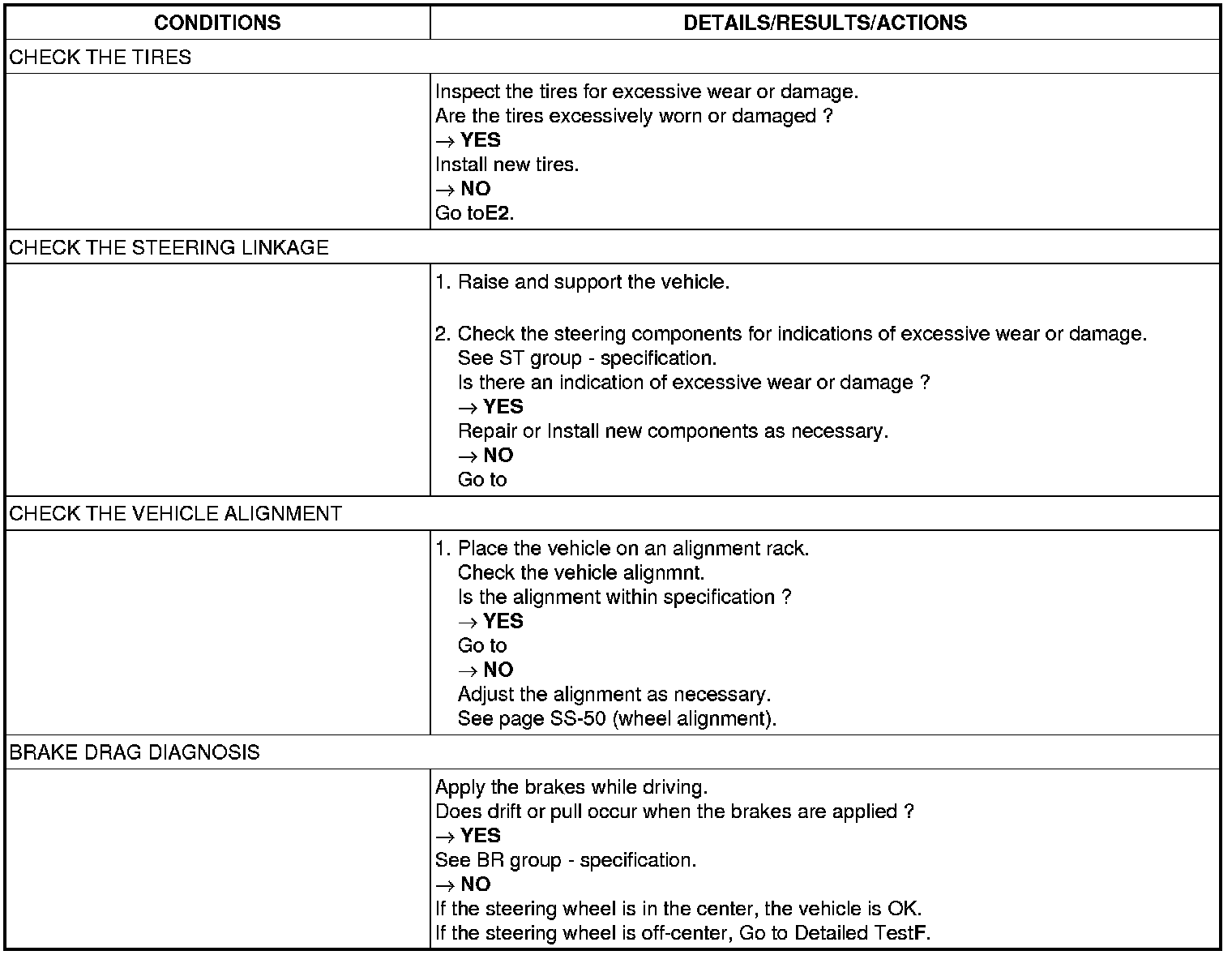 DETAILED TEST E : DRIFT LEFT OR RIGHT
